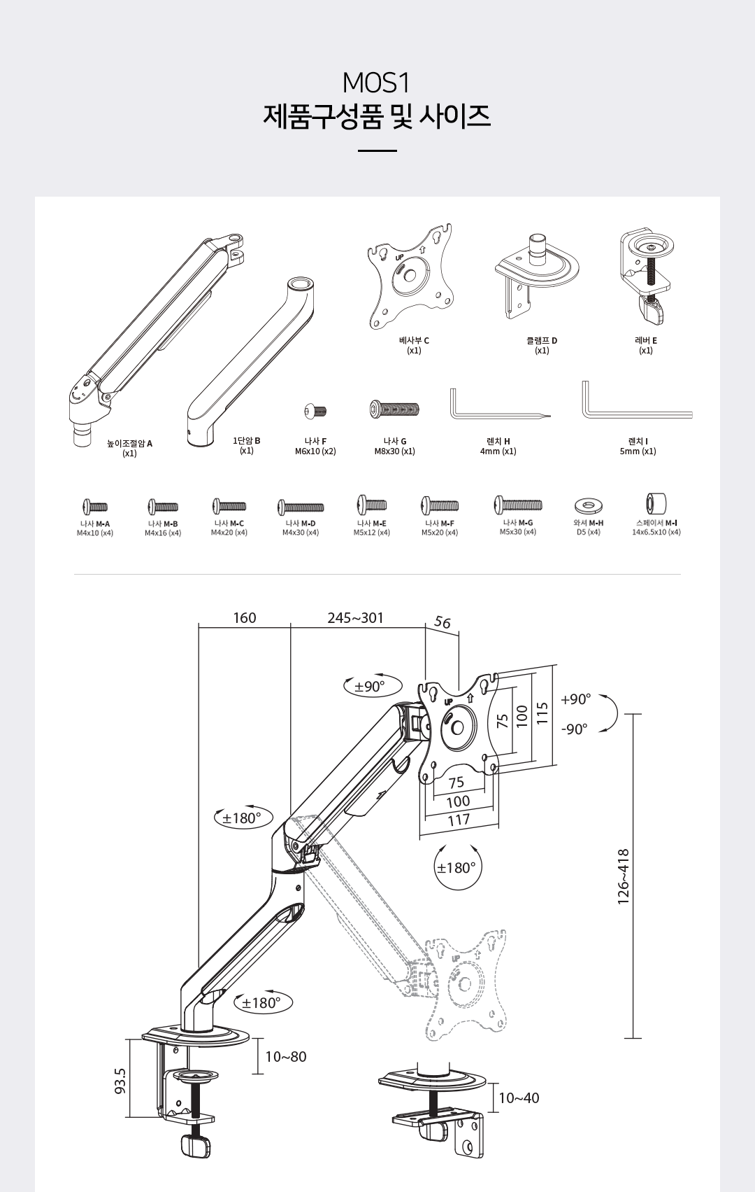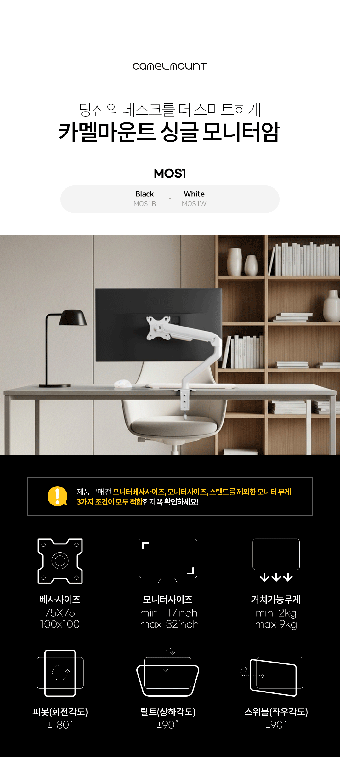 • 카멜마운트 싱글 모니터암 거치대 MOS1